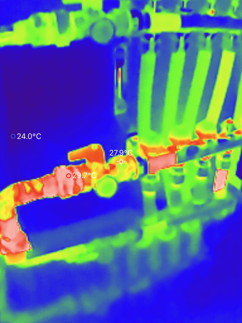 - Contrôle régulier avec une caméra thermique afin de vérifier le bon passage du débit dans les boucles